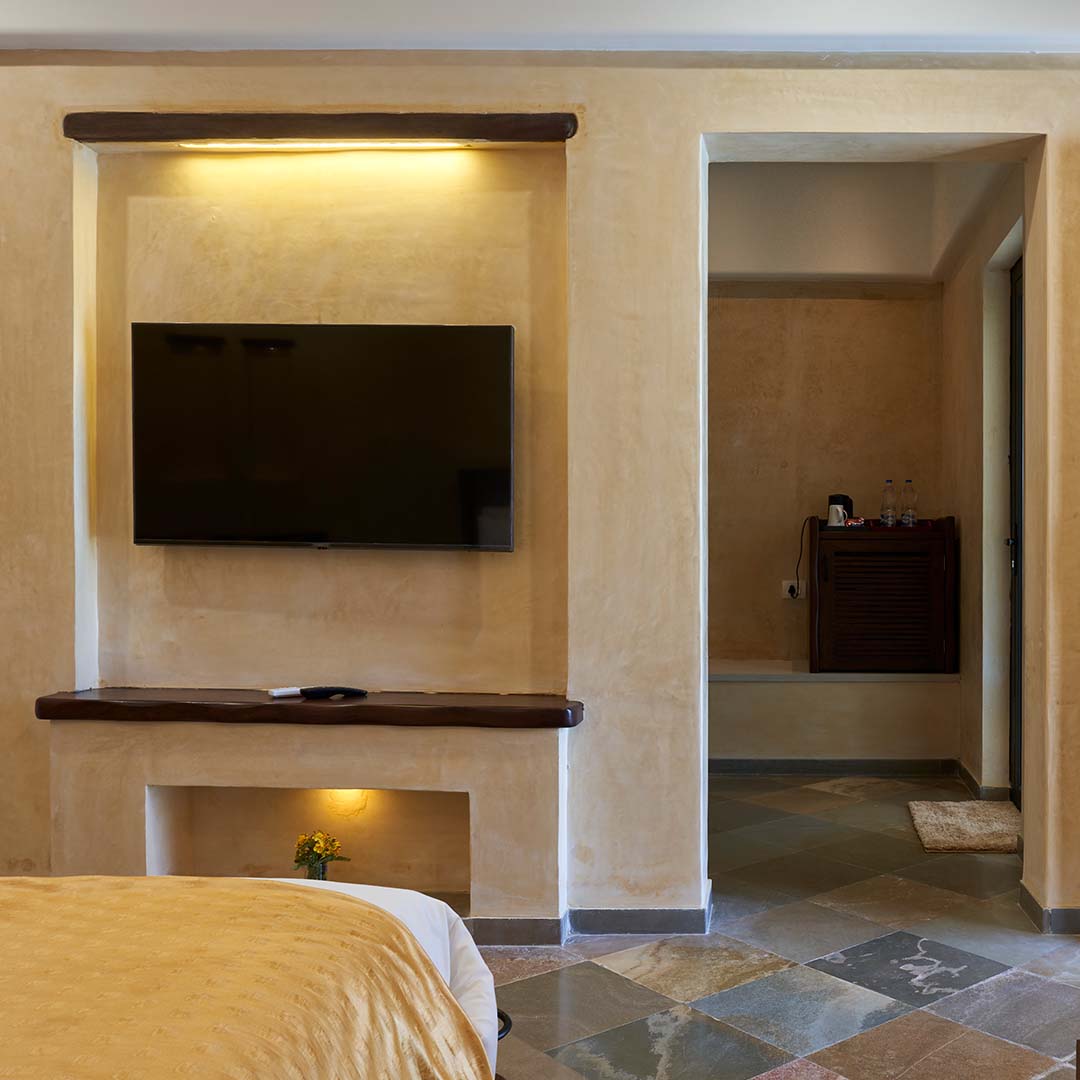 The villas come with the added luxury of private pools. It is magnificent amenity that guests will be happy to indulge in, especially after a long day of exploring. Also, waking up to panoramic views of the Aravalli Range and unwind in your villa's private courtyard. The sitting veranda is a perfect setting to connect with nature and enjoy with your loved ones.